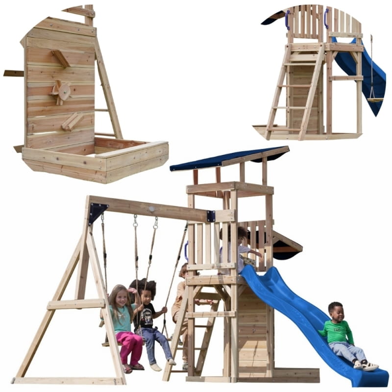 AXI Drewniany Duży Plac Zabaw – Wieża, Huśtawki, Zjeżdżalnia i Piaskownica w Jednym!