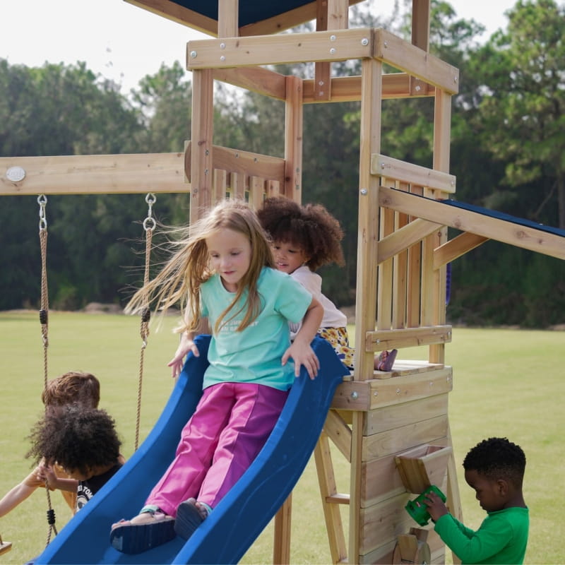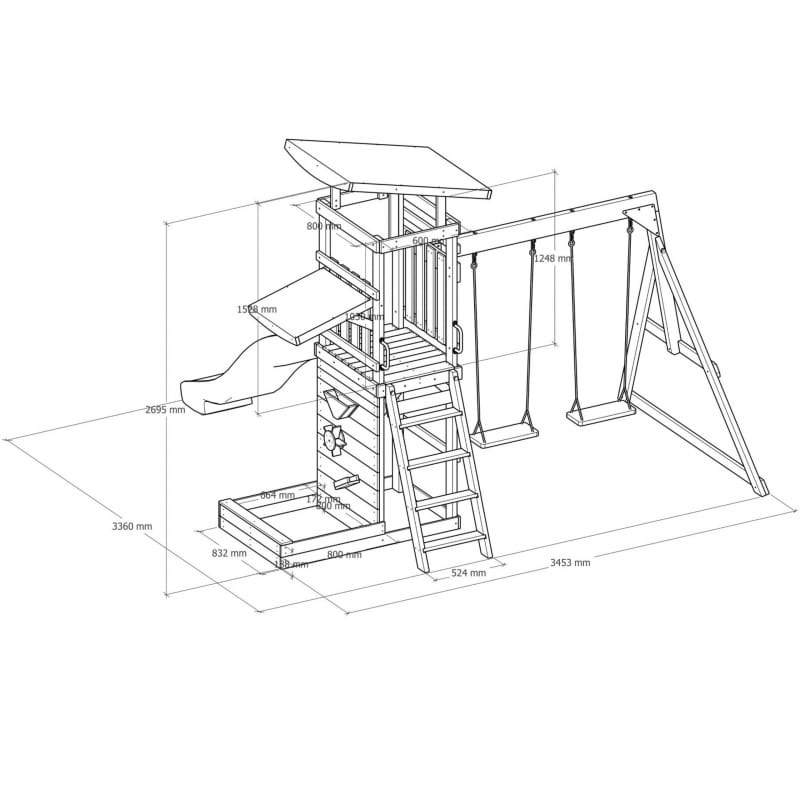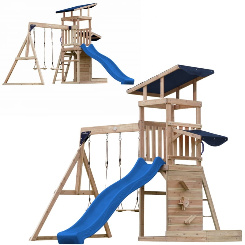 Ten duży plac zabaw AXI jest kompletnym centrum rozrywki, które zaspokoi potrzeby każdego małego poszukiwacza przygód.