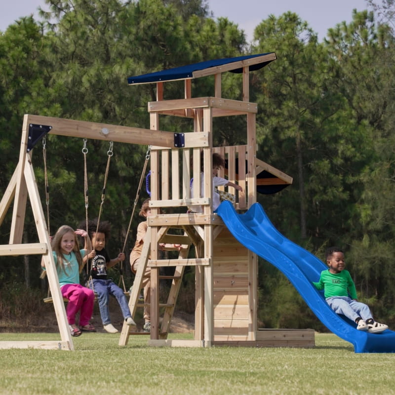 Ten duży plac zabaw AXI to mistrzowskie połączenie ekologii, bezpieczeństwa i różnorodności. Wykonany w 100% z drewna cedrowego FSC i zabezpieczony ekologiczną bejcą na bazie wody, zapewnia naturalne i bezpieczne środowisko do zabawy. Konstrukcja pomieści jednocześnie do 5 dzieci, stając się idealnym miejscem do wspólnych przygód i gier.