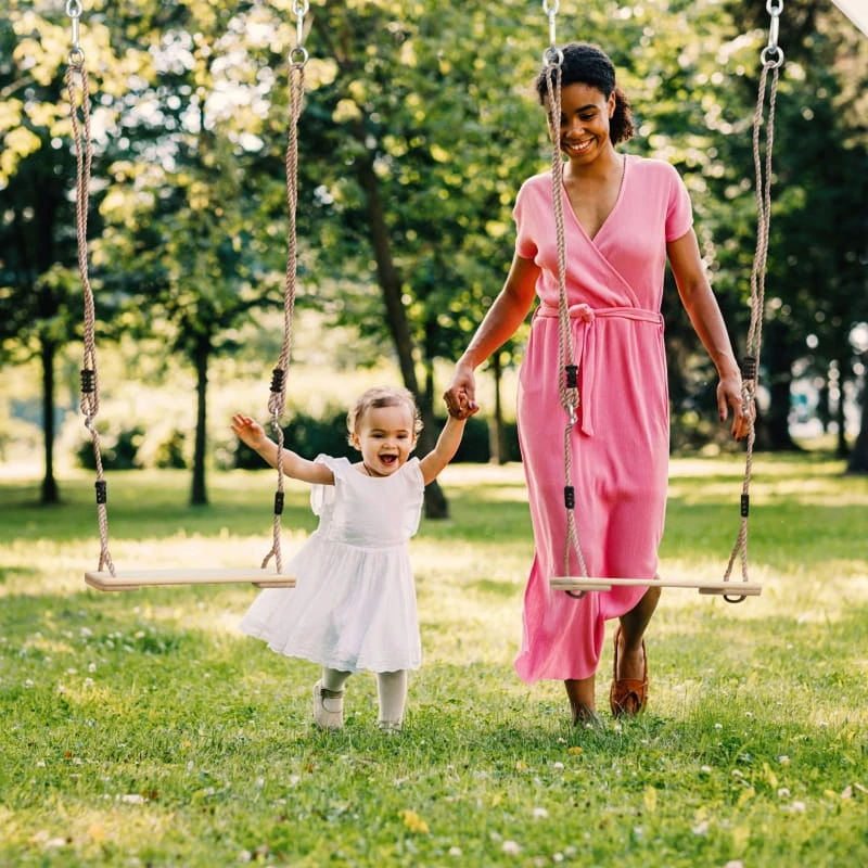 Dwa siedziska to podwójna radość! Dzieci mogą huśtać się razem, ucząc się równowagi i poprawiając koordynację ruchową.