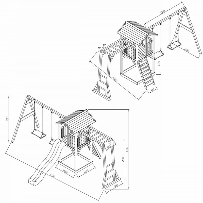 AXI Plac Zabaw Drewniany Wieża Podwójną Huśtawką Drabinki Wspinaczkowe Zjeżdżalnia XLL