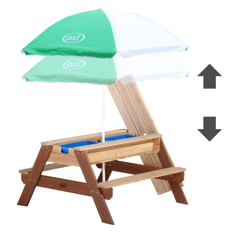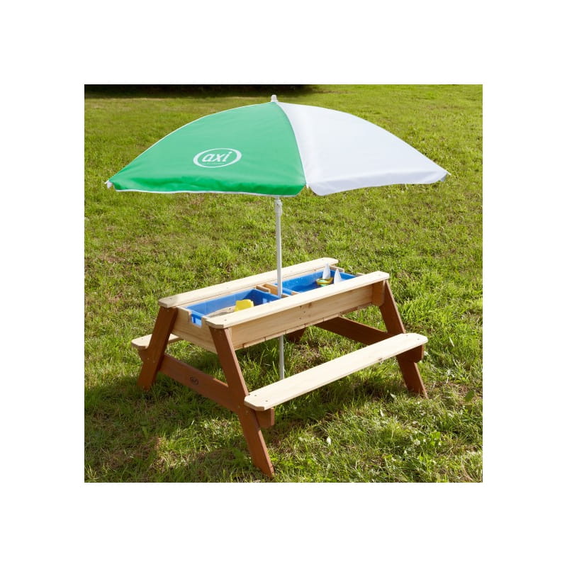 AXI Stół Piknikowy Nick z Ławką i Parasolem oraz Pojemnikami na Wodę/Piasek – centrum ogrodowej zabawy