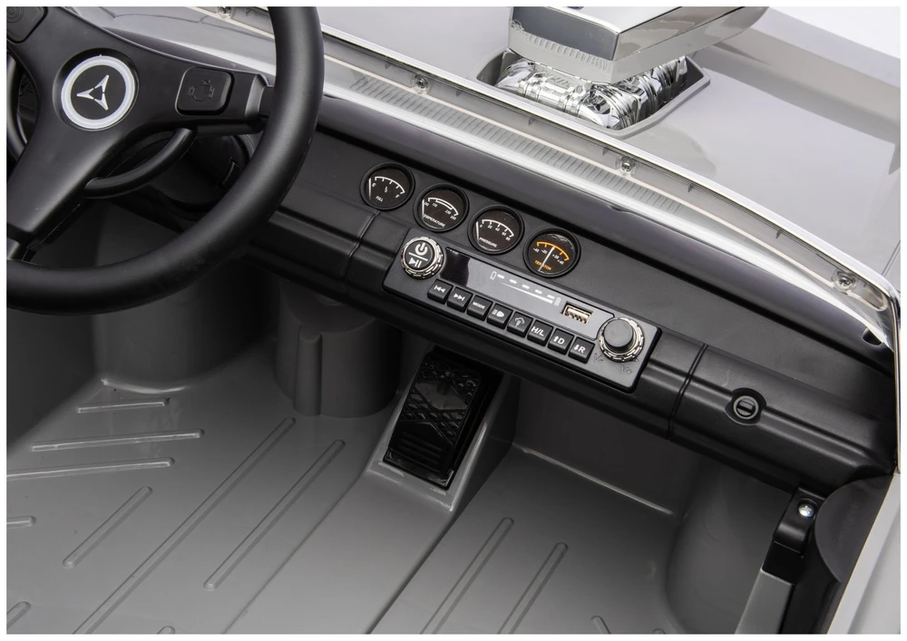 Komfort jazdy zapewniają miękkie koła z pianki EVA oraz fotel obity elegancką ekoskórą. Dzięki wejściom MP3, USB i Bluetooth, mały kierowca może słuchać swoich ulubionych bajek lub piosenek prosto z głośników samochodu.