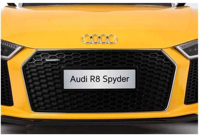 Dziecięcy model Audi R8 to wersja stylistycznie nawiązująca do roadstera, co charakteryzuje się dwoma siedzeniami, brakiem stałego dachu oraz sportowym temperamentem. Kolejnym atutem jest też oryginalny, żółty kolor karoserii, przez co trudno go przeoczyć na ulicy. Zminiaturyzowana wersja Audi R8 Spyder tak samo, jak jego pełnowymiarowy odpowiednik, została wyposażona w fantastycznie wyglądające reflektory ze świecącymi diodami, a także przyciemnianą przednią szybę, czy masywny, wysoki grill.