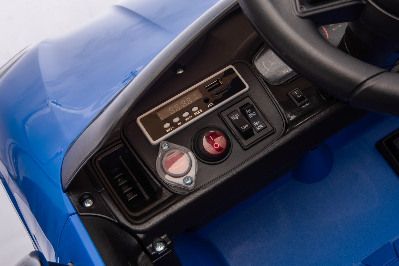 Długa jazda nie będzie nudna dzięki rozbudowanemu Panelowi Audio! Odtwarzaj muzykę przez MP3, łącz się przez Bluetooth lub włącz Radio FM. Realizmu dodają działające światła LED z włącznikiem oraz klakson w kierownicy.