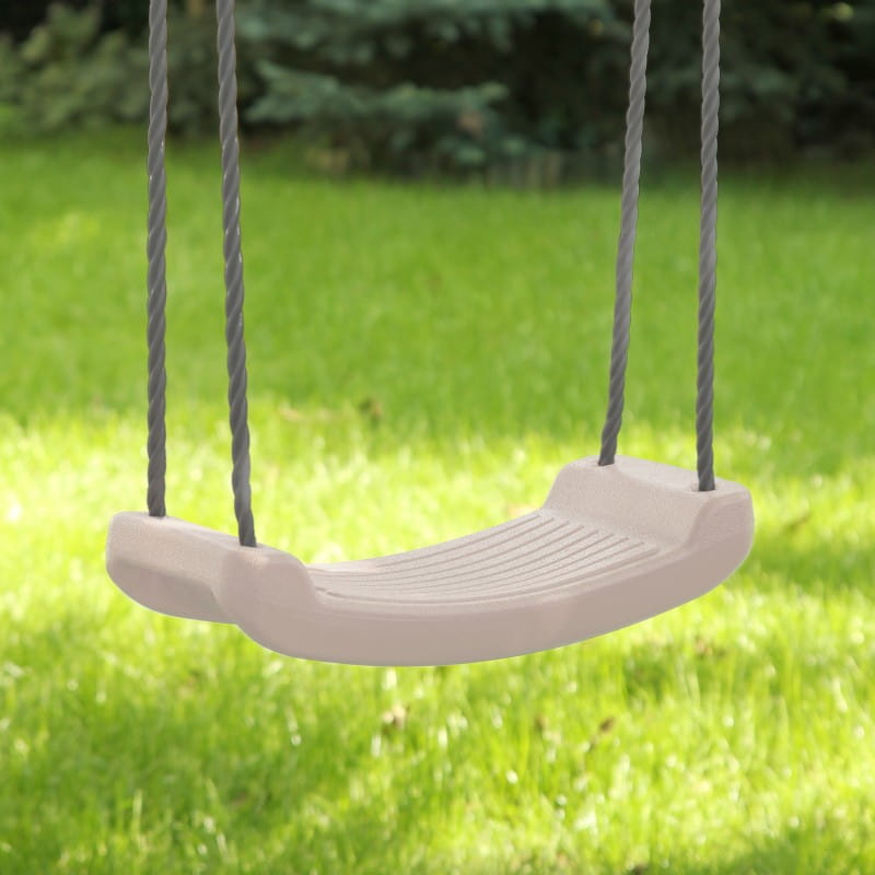 W zestawie znajdują się 4 kotwy, które zapewniają trwałe mocowanie huśtawki do podłoża. Siedziska zostały wykonane z wysokiej jakości tworzywa odpornego na warunki atmosferyczne oraz promieniowanie UV. Wysokość każdego siedziska można regulować.