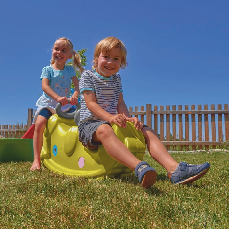 Sammy Dino Rocker jest lekka i łatwa do przenoszenia – możesz ją ustawić w ogrodzie, na tarasie czy w pokoju dziecięcym. Idealna do użytku zarówno wewnątrz, jak i na zewnątrz.