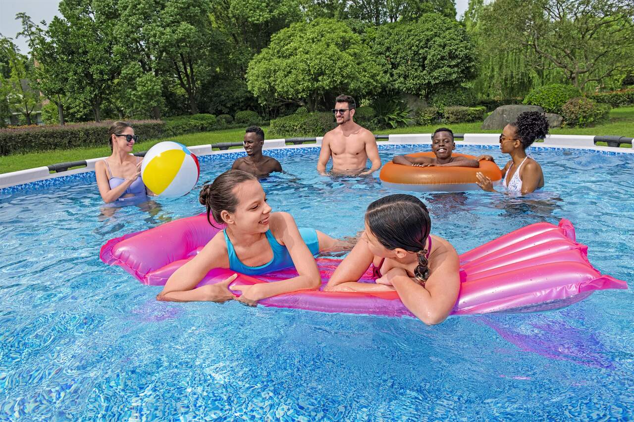 Basen stelażowy z serii Steel Pro dostępny jest w różnych rozmiarach – od kompaktowych modeli idealnych dla dzieci, po większe warianty, które pomieszczą całą rodzinę. Niezależnie od wybranego rozmiaru, każdy model oferuje wystarczająco dużo przestrzeni do pływania, zabawy czy relaksu na dmuchanym materacu.