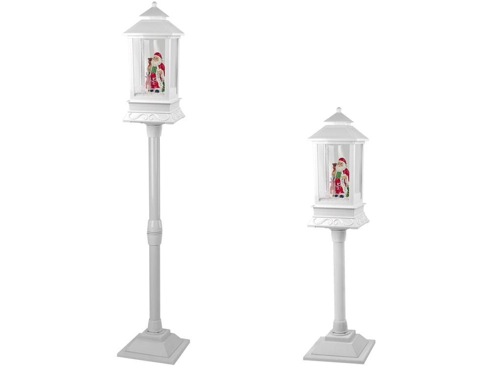 Latarnia ma piękne wzory, a całość jest w białym kolorze, charakterystyczny dla tego okresu. Wykonana z trwałego plastiku, przez co jest lekka i wytrzymała, bożonarodzeniowa ozdoba może być używana co roku, co czyni ją bardzo ekonomicznym wyborem i zakupem na lata. Pompa znajdująca się wewnątrz transportuje śnieg z podstawy i rozpyla go od góry, dając wrażenie padającego śniegu.