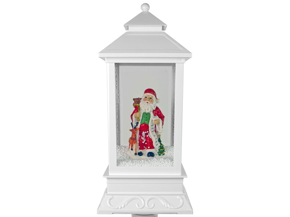 Dekoracja Świąteczna Lampa Latarnia z Mikołajem Biała Kolędy Światła