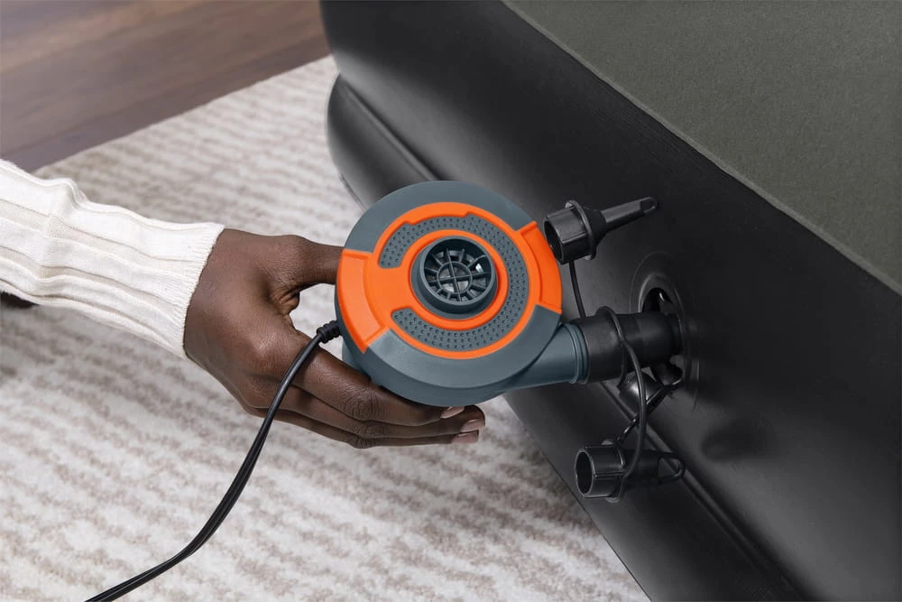 Dzięki wbudowanemu zaworowi szybkiego pompowania, materac można napełnić powietrzem w kilka minut za pomocą pompki ręcznej lub elektrycznej. Po spuszczeniu powietrza zajmuje niewiele miejsca, co ułatwia jego transport i przechowywanie.