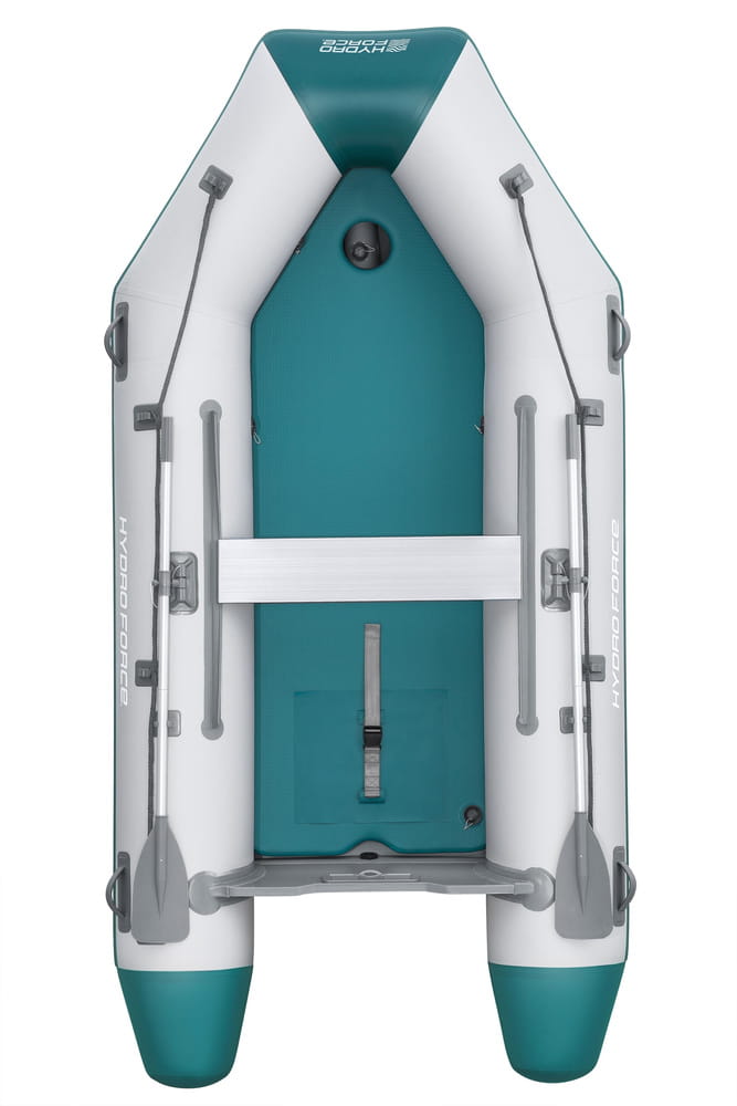 - W zestawie para aluminiowych wioseł (1,62 m) z wielokierunkowymi dulkami do łatwego sterowania