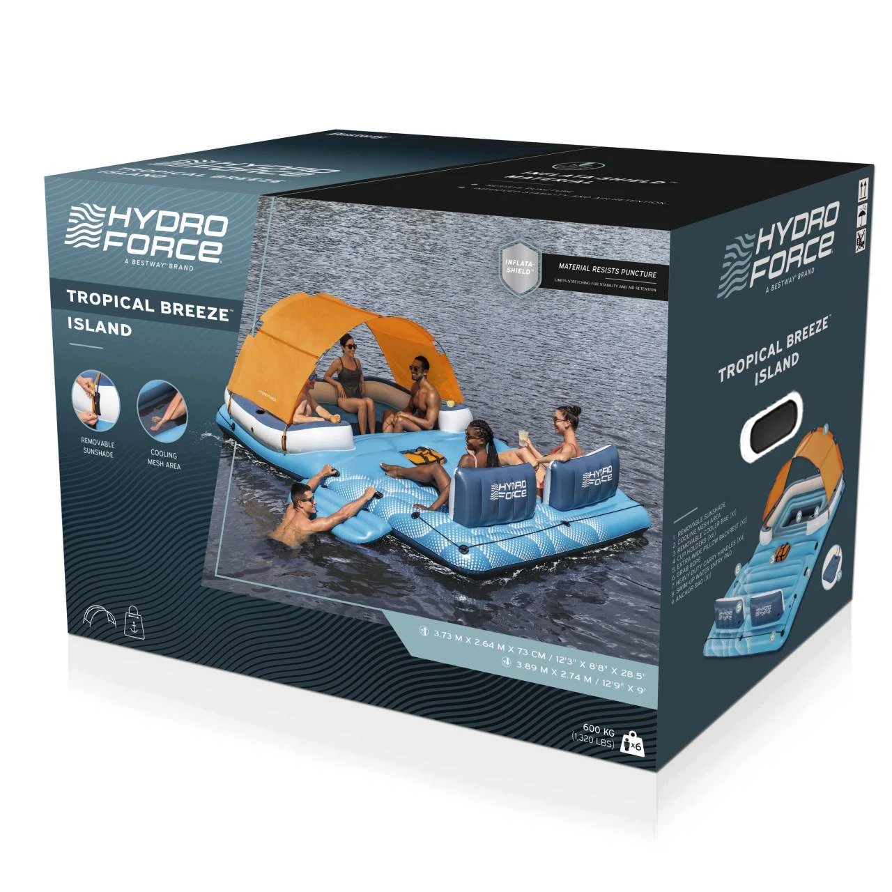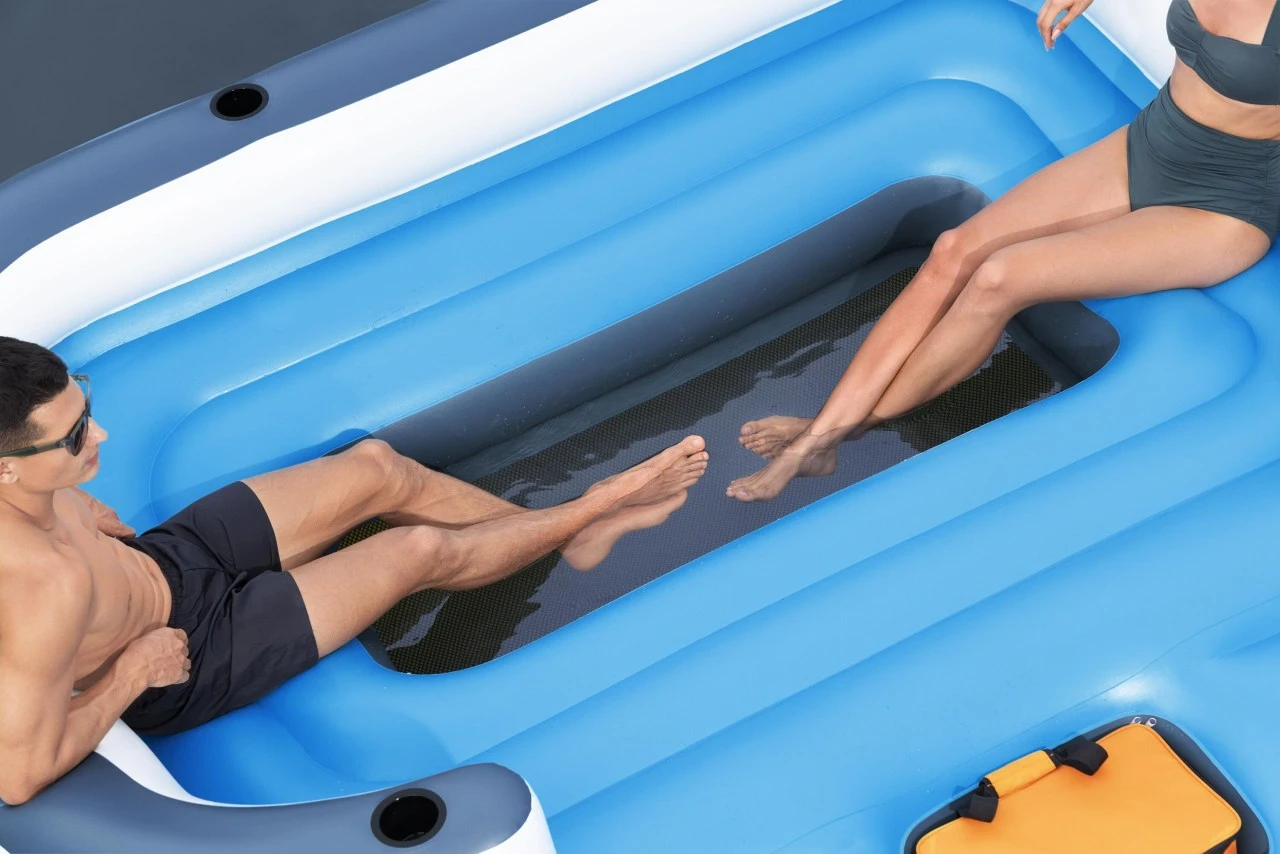 Duża Wyspa do pływania 6-osobowa BESTWAY 373x264x73cm + Daszek + Torba termiczna + Siateczkowe dno + Oparcia