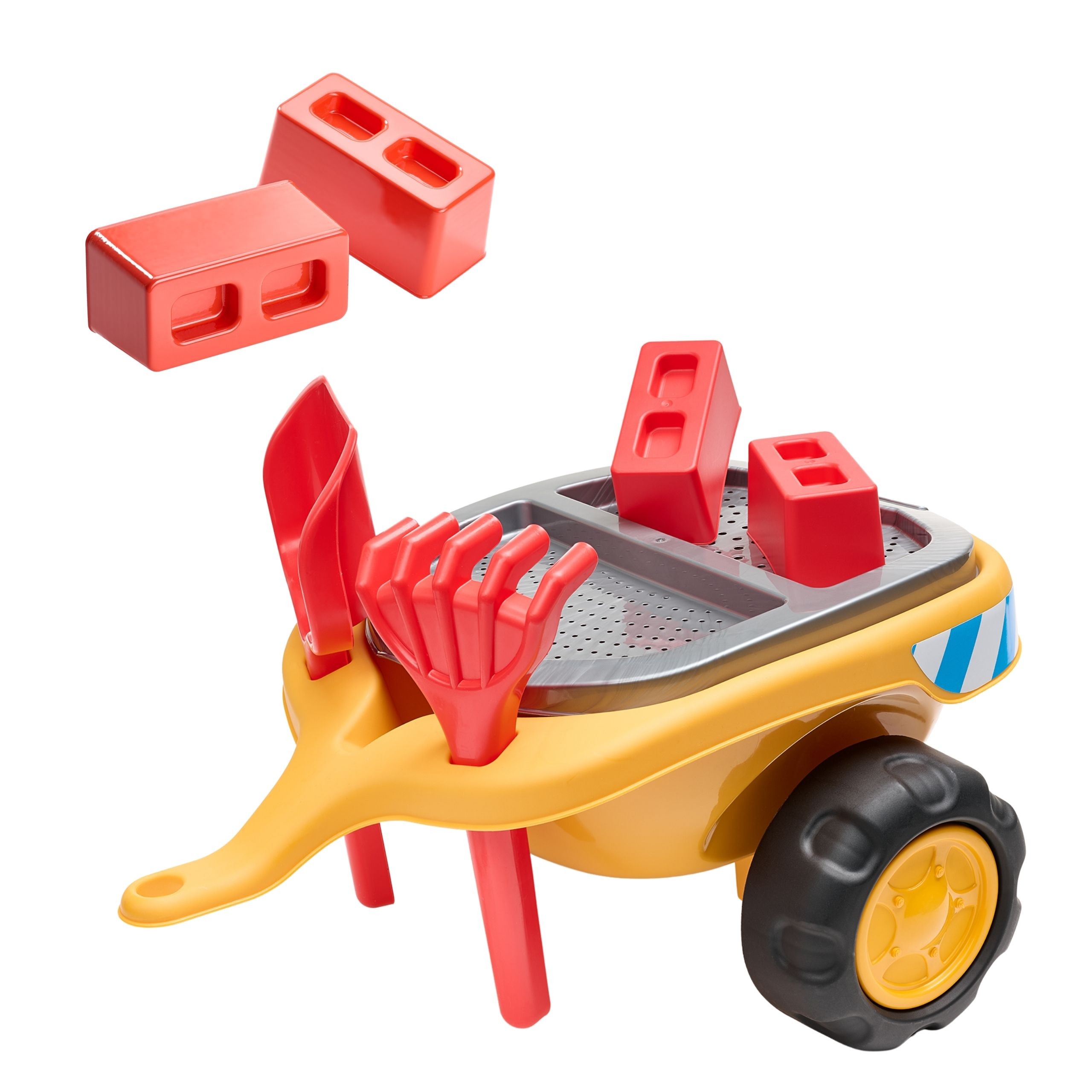 - Pełny zestaw murarski w komplecie: Do jeździka dołączono odczepianą przyczepkę oraz komplet narzędzi: sito, łopatkę, grabki i foremki do tworzenia piaskowych cegieł. To gotowy przepis na godziny kreatywnej pracy w ogrodzie.
