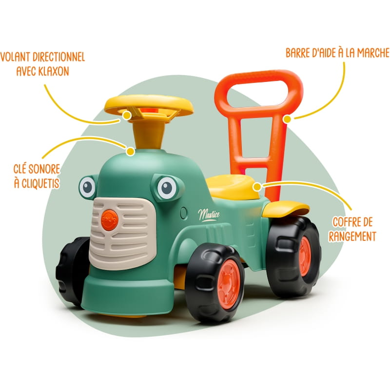 FALK Maurice Traktorek Jeździk Zielony Pchacz Odpychacz Schowek od 1 roku