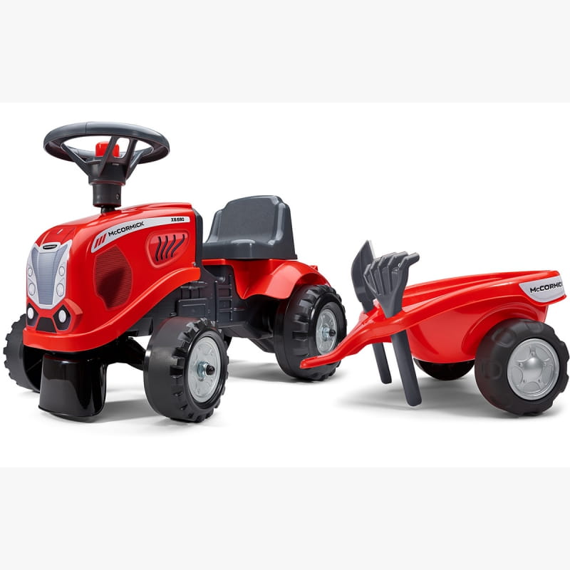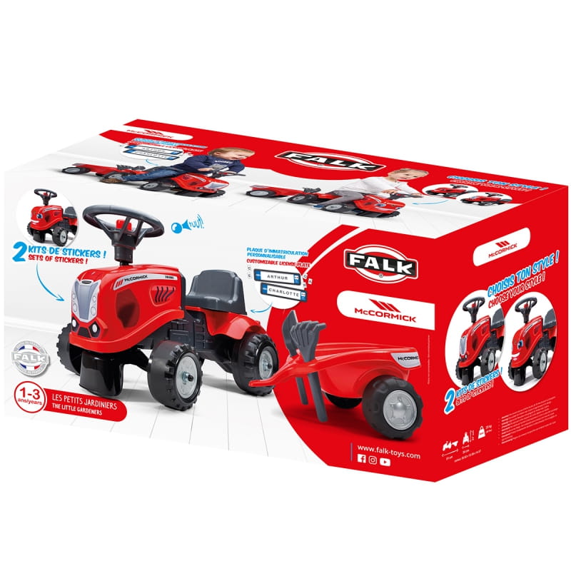 FALK Traktorek Baby Mac Cormick Czerwony z Przyczepką + akc. od 1 roku