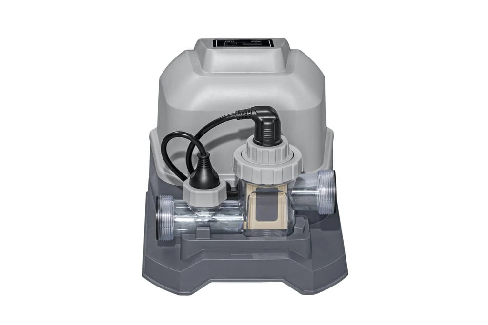 - kompatybilny z basenami o pojemności do 26 498 l, wymaga minimalnego natężenia przepływu 1 249 l lub większym, pompy z filtrem piaskowym