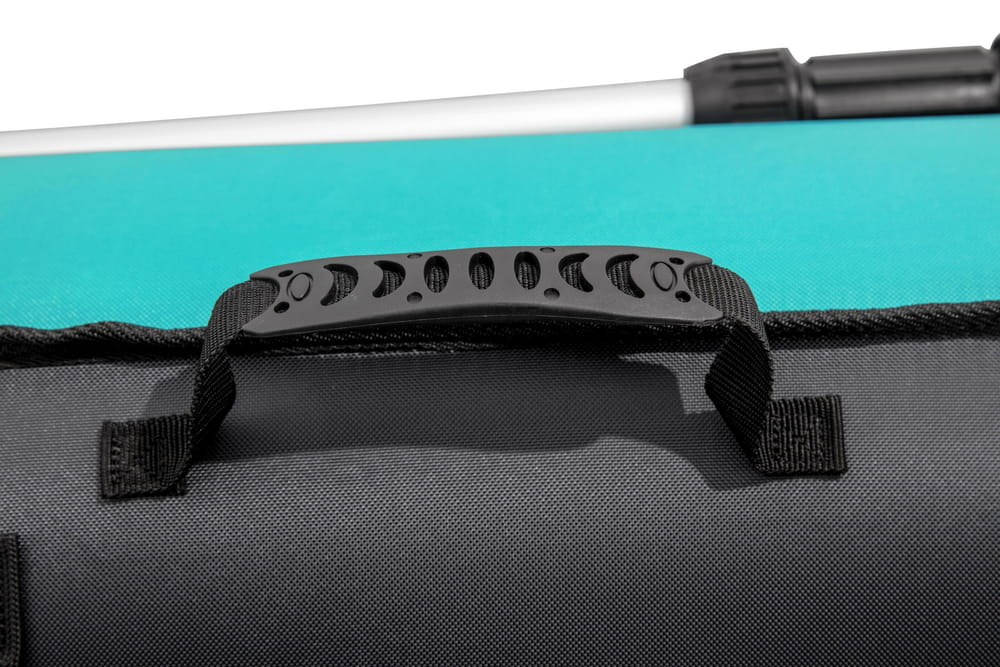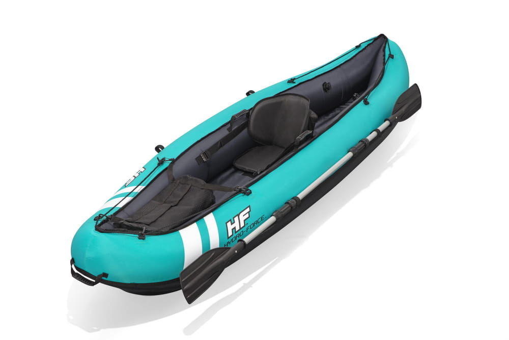 Wyjazd nad wodę to idealna forma spędzania wolnego czasu. Aby urozmaicić sobie ten beztroski czas zaopatrz się w dodatkowe akcesoria basenowe. Kajak idealnie sprawdzi się również podczas rekreacyjnej wycieczki po jeziorze lub basenie. Został wykonany z wytrzymałego winylu odpornego na uszkodzenia. Tkanina jest olejoodporna, wodoodporna i wytrzymuje intensywne promienie UV. Wysokiej jakości nylonowa powłoka jest również odporna na przebicie i zbudowana tak, aby wytrzymać szorstkie i często kamieniste wody rzeki. Będziesz mógł manewrować po krętych rzekach, jeziorach, spokojnych wodach otwartych lub odpływach i przypływach fal. Zaprojektowany z regulowanymi oparciami zapewniającymi wygodę i podparcie, Oprócz schowka umieszczonego w konstrukcji statku, jest również wyjmowana torba do przechowywania, która umożliwia aby mieć dostęp do niezbędnych rzeczy podczas wiosłowania po wodzie. Wiosła z podwójnym piórem są aluminiowe, lekkie i trzymane równo za pomocą bezpiecznych zatrzasków. Po całkowitym napompowaniu za pomocą ręcznej pompki kajak ma 2.80 m długości i może unieść do 130 kg . Posiada solidne płócienne uchwyty z każdej strony, dzięki czemu przenoszenie kajaka jest dziecinnie proste. Kajak ma zdejmowane płetwy, które pomagają zachować stabilność kierunkową i zwiększają prędkość. W celu przechowywania wystarczy odłączyć płetwy od kajaka, aby uzyskać ultra kompaktowy, oszczędzający miejsce element.