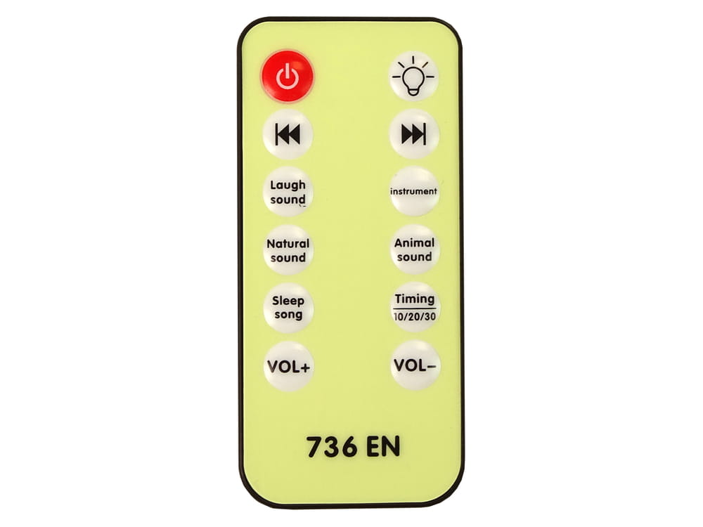 Całość sterowana jest za pomocą pilota, który reguluje oświetlenie, głośność oraz wydawane dźwięki.