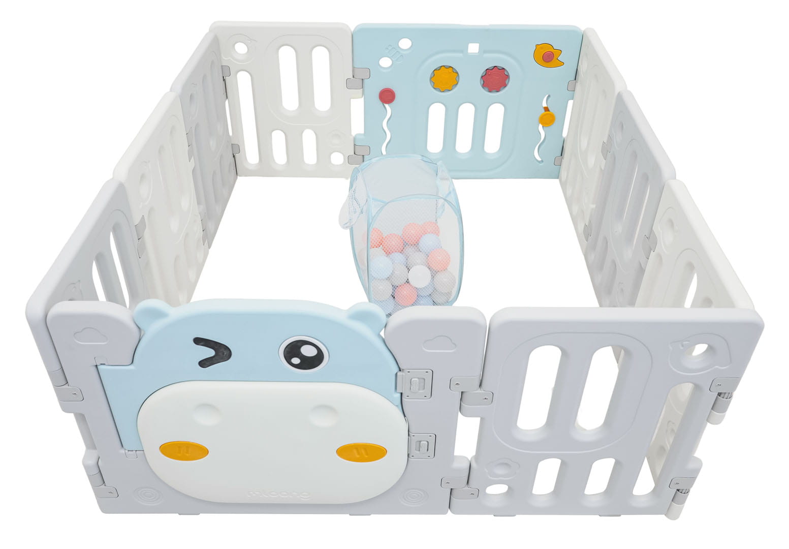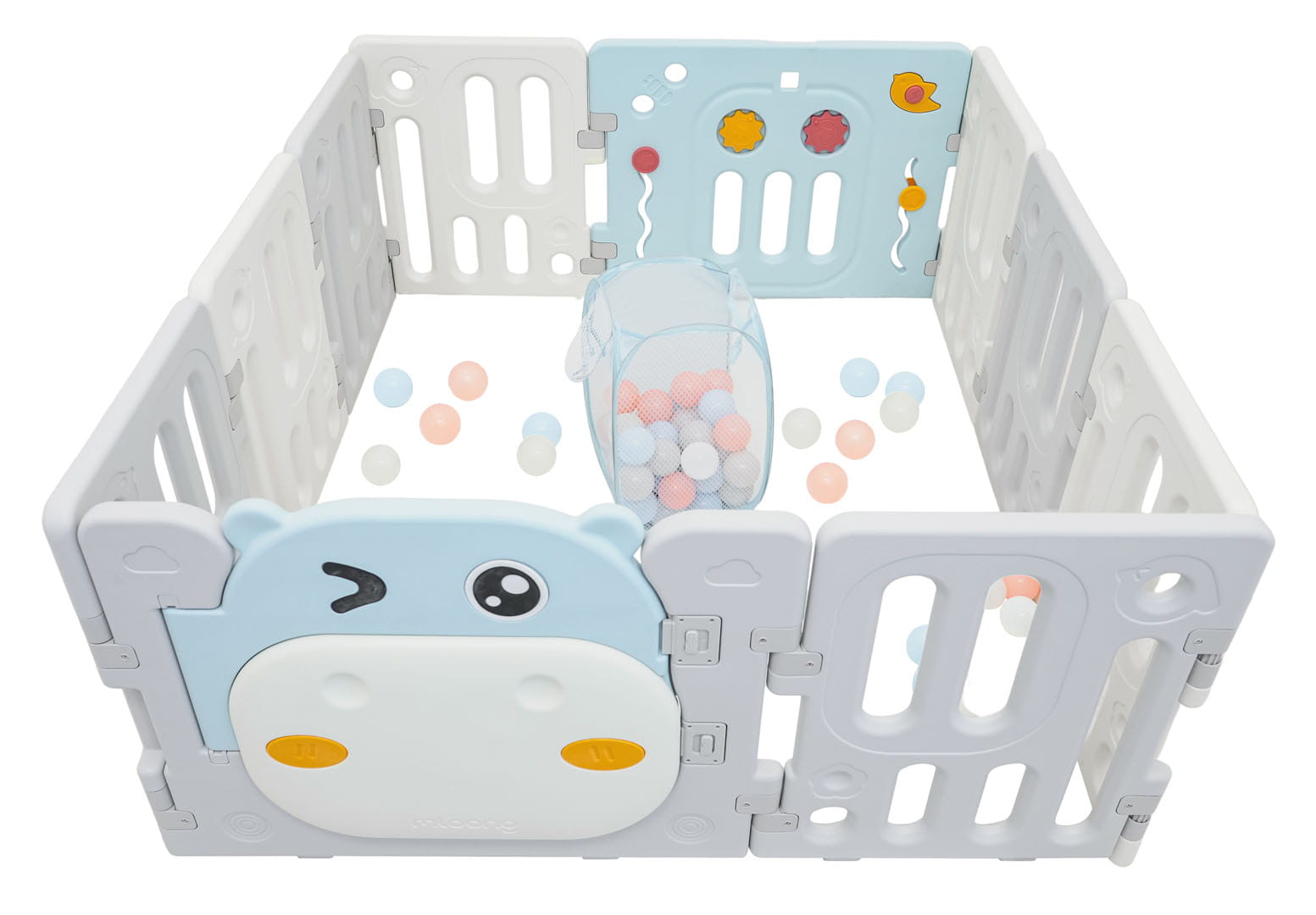 Zaczynasz od przestrzeni do leżenia i przewracania się z brzuszka na plecy. Potem dochodzi raczkowanie, zabawa z klockami, a może nawet mała kuchnia zabawkowa czy namiot? Kojec jest wystarczająco duży i elastyczny, by pomieścić to wszystko.