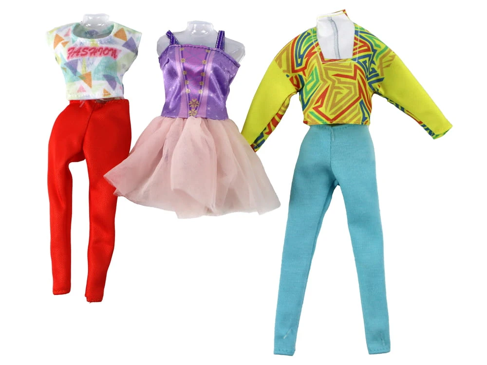 Lalka jest ubrana w narciarski strój z białym kaskiem, białymi butami zimowymi, nartami i kijkami. Jednak to jeszcze nie wszystko! W zestawie znajdziesz także kostium baletnicy (fioletowy kostium z różowym tiulowym dołem, różowa opaska na włosy i białe baletki), strój do jazdy na deskorolce (niebieska deskorolka, żółta bluzka z długim rękawem, niebieskie spodnie, różowy kask i różowe sportowe buty) oraz strój do jogi (wygodne pomarańczowe spodnie, kolorowa bluzka z krótkim rękawem i miętowe sportowe buty).