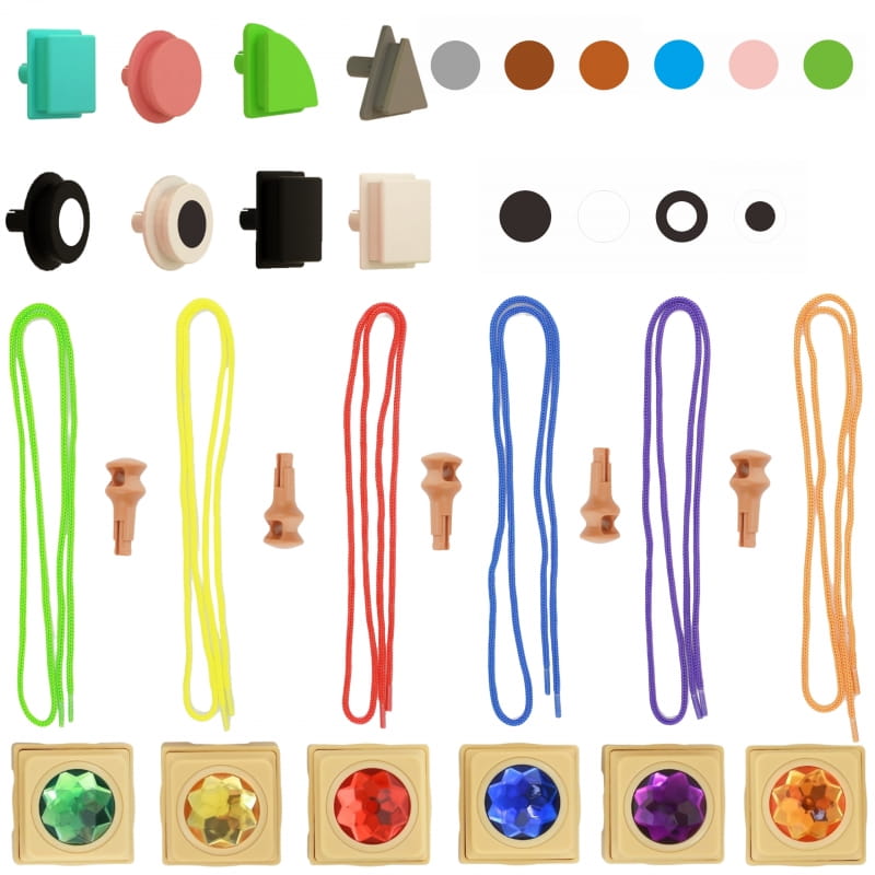 - 64 kołeczki geometryczne (4 kształty, 6 kolorów)