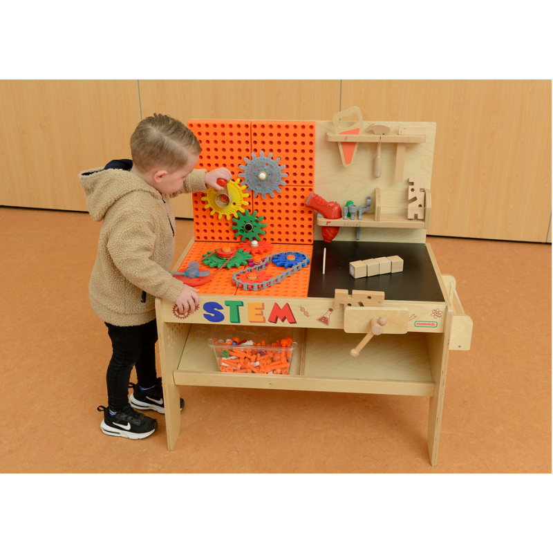 Drewniany warsztat STEM od marki Masterkidz to idealne miejsce do eksperymentowania, która rozwija kreatywność i umiejętności techniczne dziecka. Wykonany z wysokiej jakości drewna, łączy zabawę z nauką, umożliwiając dzieciom odkrywanie zasad mechaniki, inżynierii i fizyki. Realistycznie wyglądający warsztat będzie super atrakcją w każdej klasie lub pokoju zabaw, zachęcając dzieci do tworzenia działających systemów i budowania z wykorzystaniem realistycznych narzędzi.
