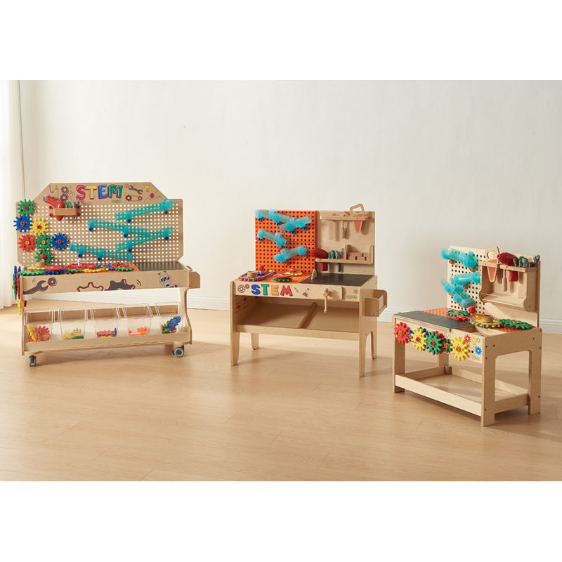 Dziecko może użyć specjalnych, dedykowanych narzędzi, by wkręcać śrubki oraz nauczyć się prawidłowego używania wkrętarki, śrubokrętów, czy kluczy. Konstruując razem skomplikowane mechanizmy, maluch pozna zasadę działania kół zębatych. Z kolei zestaw z rurami i pompą nauczy dziecko o grawitacji oraz podstaw hydrauliki.