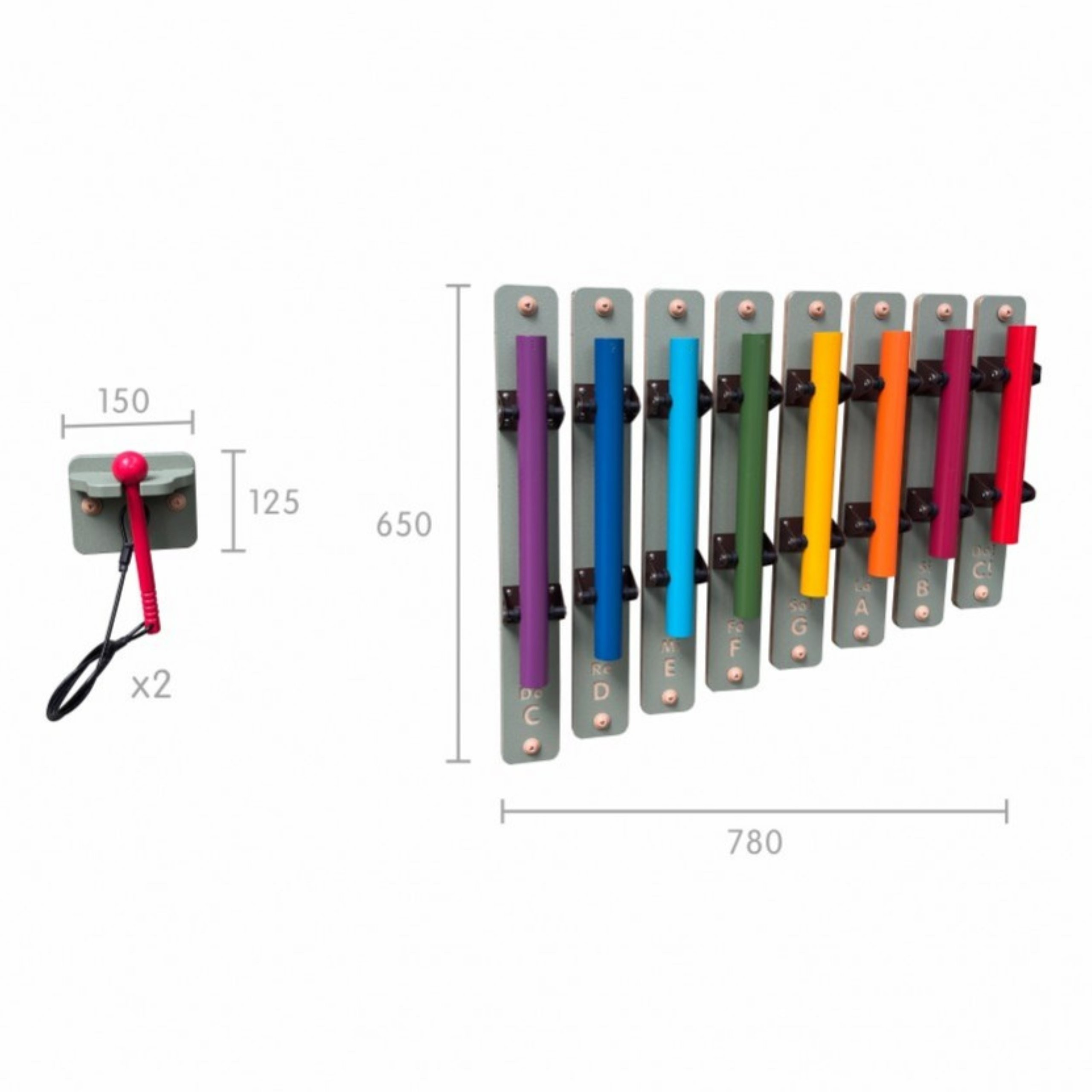 - 8 kolorowych rurek dźwiękowych o zróżnicowanej długości i skali.