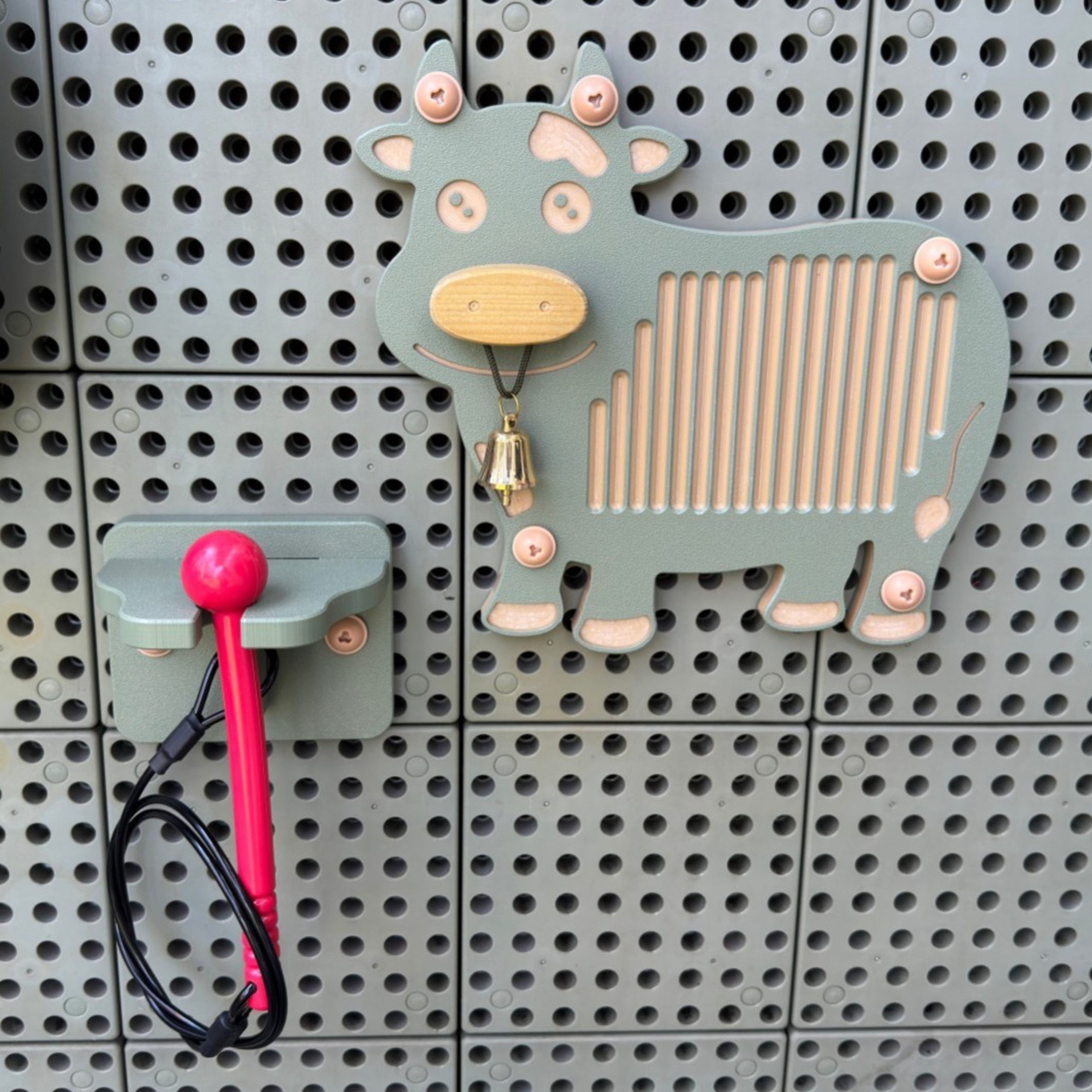 Ten unikalny panel został zaprojektowany z myślą o małych artystach, którzy dopiero poznają świat rytmiki. Muzyczna Krowa na panel STEM oferuje dwa rodzaje doznań dźwiękowych: klasyczne pocieranie pałeczką o specjalne żłobienia (efekt tarki) oraz radosne dzwonienie prawdziwym dzwonkiem z brązu zawieszonym na szyi zwierzaka. To idealne połączenie zabawy z nauką fizyki dźwięku.