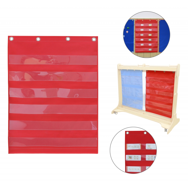 MASTERKIDZ Materiałowy Arkusz Do Wieszania Z Kieszonkami Na Fiszki I Obrazki Czerwony