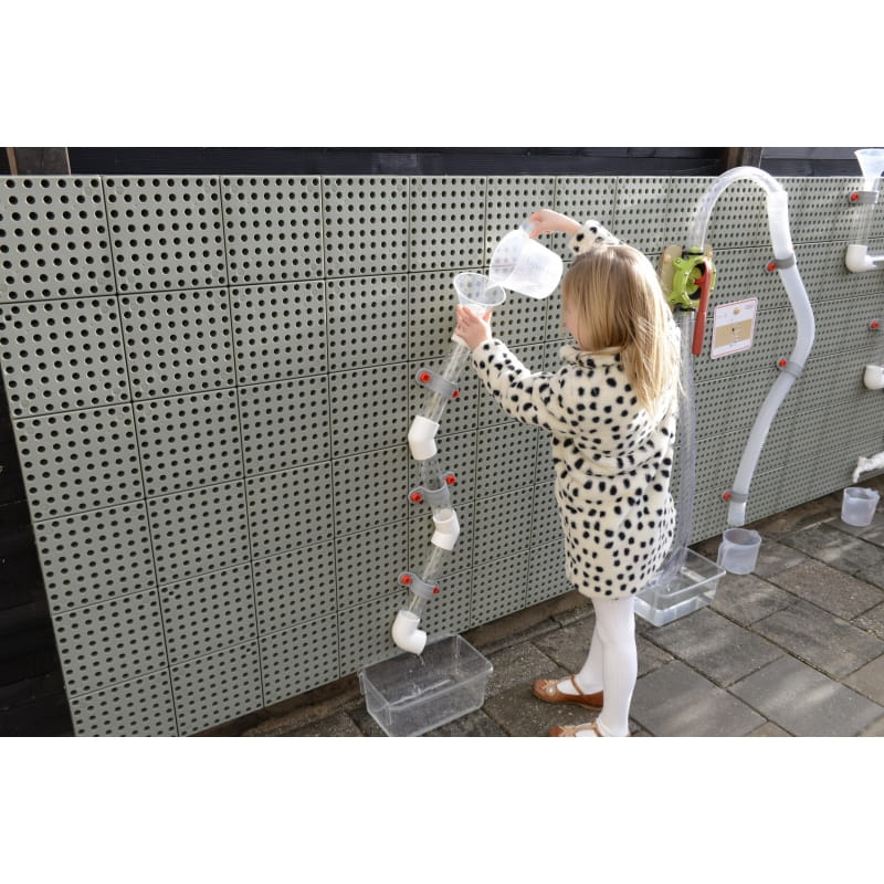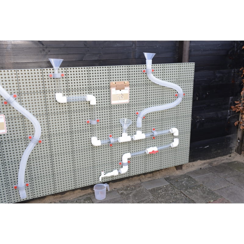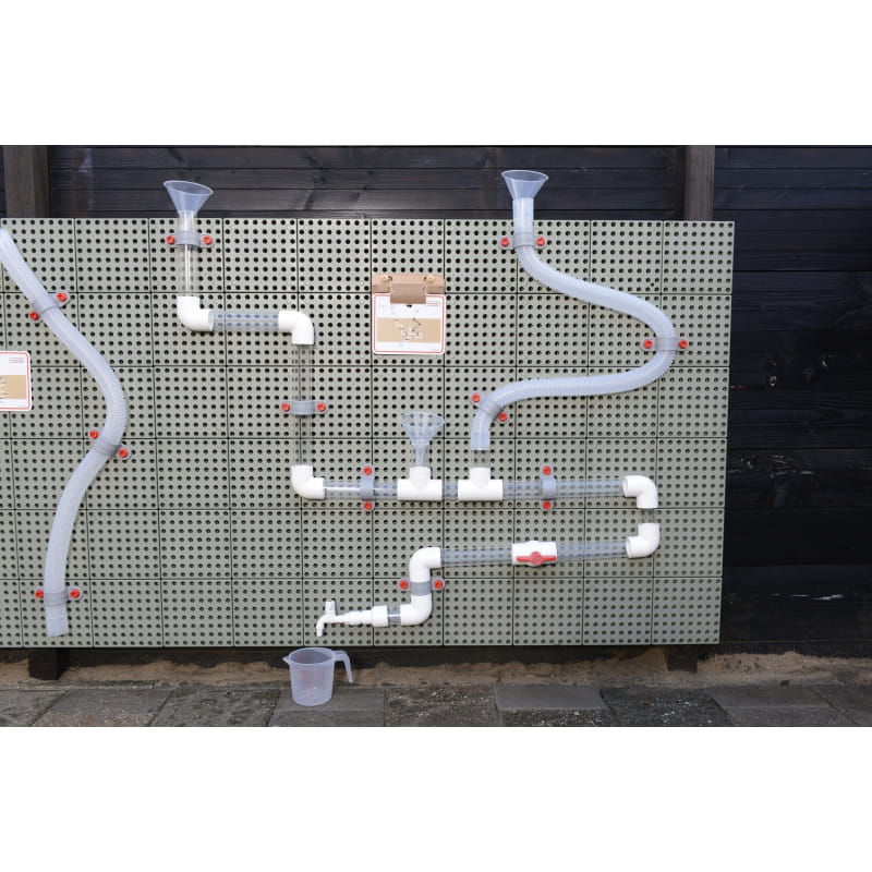 Do zestawu można dokupić pompę wodną, która sprawi, że zabawa stanie się jeszcze ciekawsza. Rurami można przepuszczać wodę, wlewając ją do lejków za pomocą dołączonych do zestawu dzbanków, ale można również zobaczyć jak spadają drewniane piłeczki, wrzucając do środka. Można zbudować jeden ogromny system rur, lub kilka mniejszych, by bawić mogło się kilkoro dzieci jednocześnie. Niesamowita zabawka marki Masterkidz, która służy do skonstruowania hydraulicznego systemu.