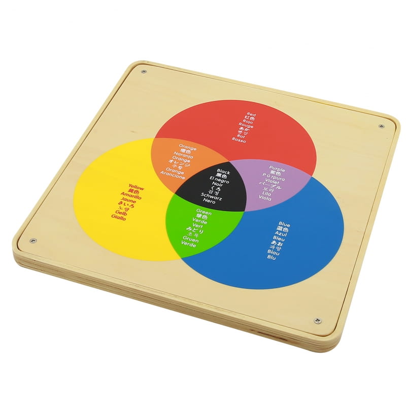 - Tablica uczy dzieci jak z podstawowych trzech kolorów powstają inne - jak mieszać kolory