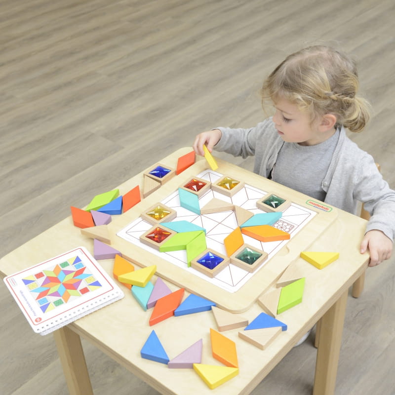 - to piękny zestaw mozaikowych płytek z kamyczkami zachęca dzieci do nauki kolorów, kształtów, nauki kształtów izometrycznych i uczenia się kreatywnych umiejętności