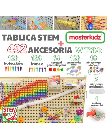 MASTERKIDZ Wolnostojąca Ściana STEM + Akcesoria Kołki Tace Klocki Narzędzia