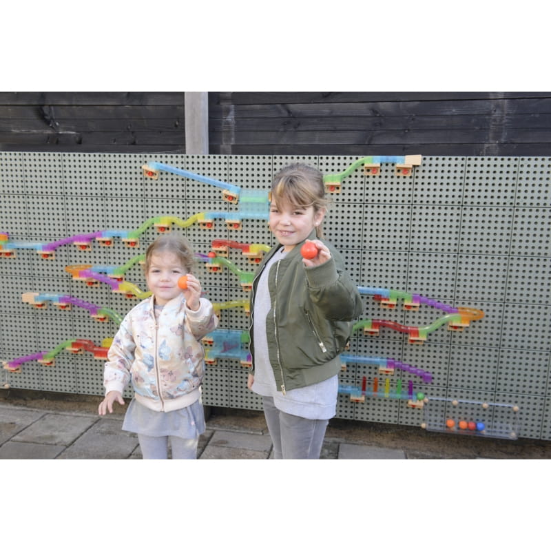 W zestawie znajduje się 63 elementy, które można dowolnie łączyć, tworząc unikalne trasy dla piłek. Konstrukcja jest kompatybilna z tablicami STEM, co pozwala na łatwy montaż i modyfikowanie układu toru. To doskonały wybór dla przedszkoli, szkół i domowych kącików nauki, który rozwija zdolności logicznego myślenia, planowania i kreatywnego rozwiązywania problemów.