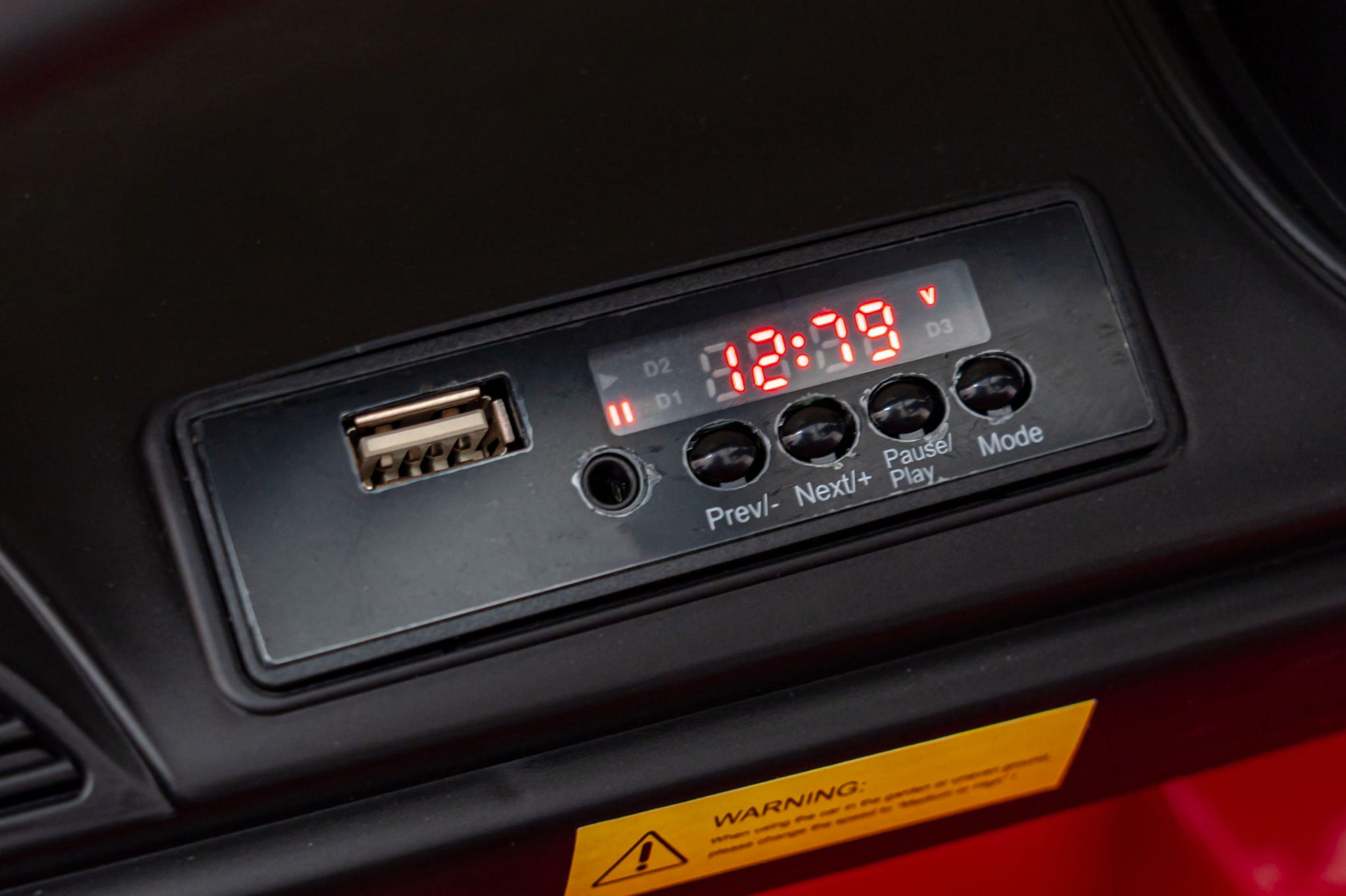 Wbudowany panel audio to prawdziwa gratka dla małych melomanów! Dzięki niemu Twoje dziecko może słuchać ulubionych piosenek. Panel wyposażony jest w odtwarzacz MP3, wgrane melodyjki, wejście USB oraz AUX, co umożliwia podłączenie smartfona lub odtwarzacza MP3. Przyciski z melodyjkami i klaksonem w kierownicy dodają autentyczności i zapewniają dodatkową frajdę podczas jazdy. Wskaźnik naładowania akumulatora (12V10Ah) pozwoli na bieżąco monitorować stan baterii, a dołączona ładowarka z diodą kontrolującą naładowanie zapewni bezproblemowe i bezpieczne użytkowanie McLarena Artura na akumulator.