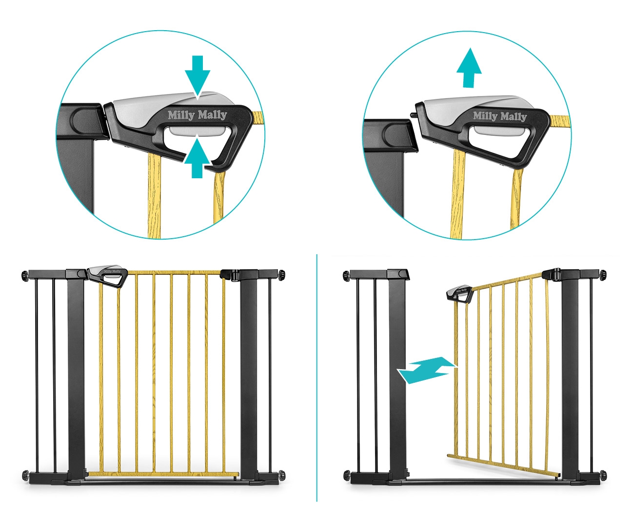 Milly Mally Bramka zabezpieczająca Barierka na schody z rozszerzeniami Guardy 104 Black Natural