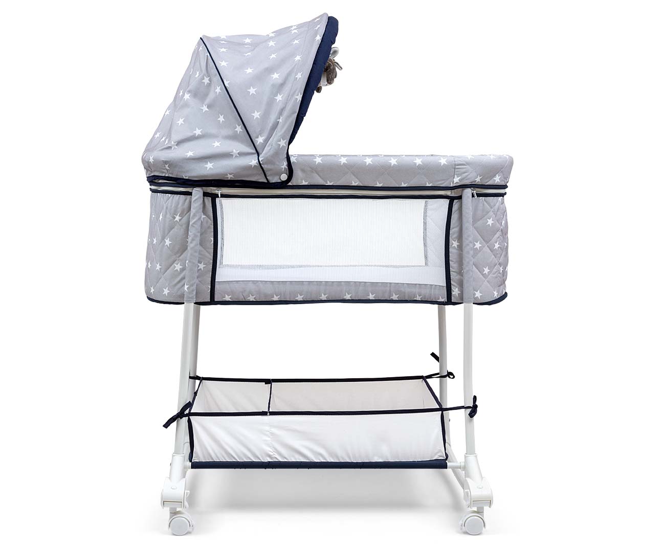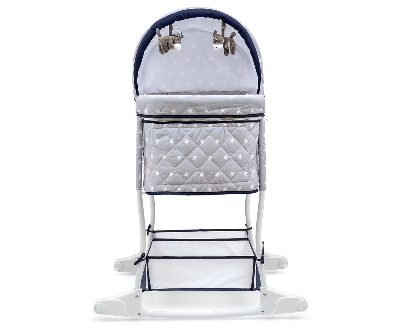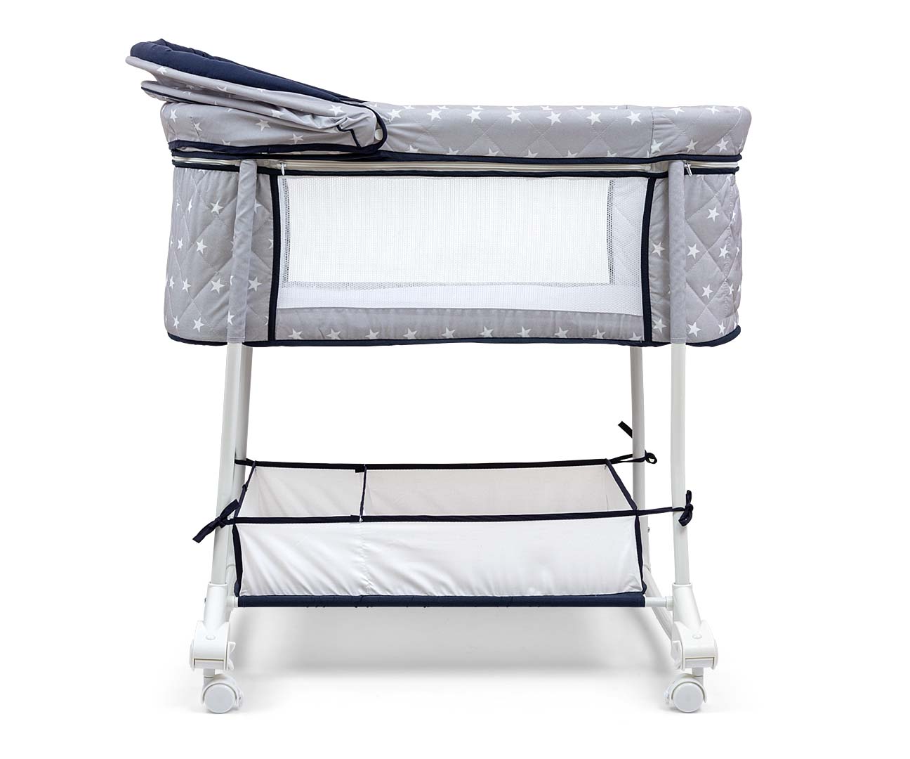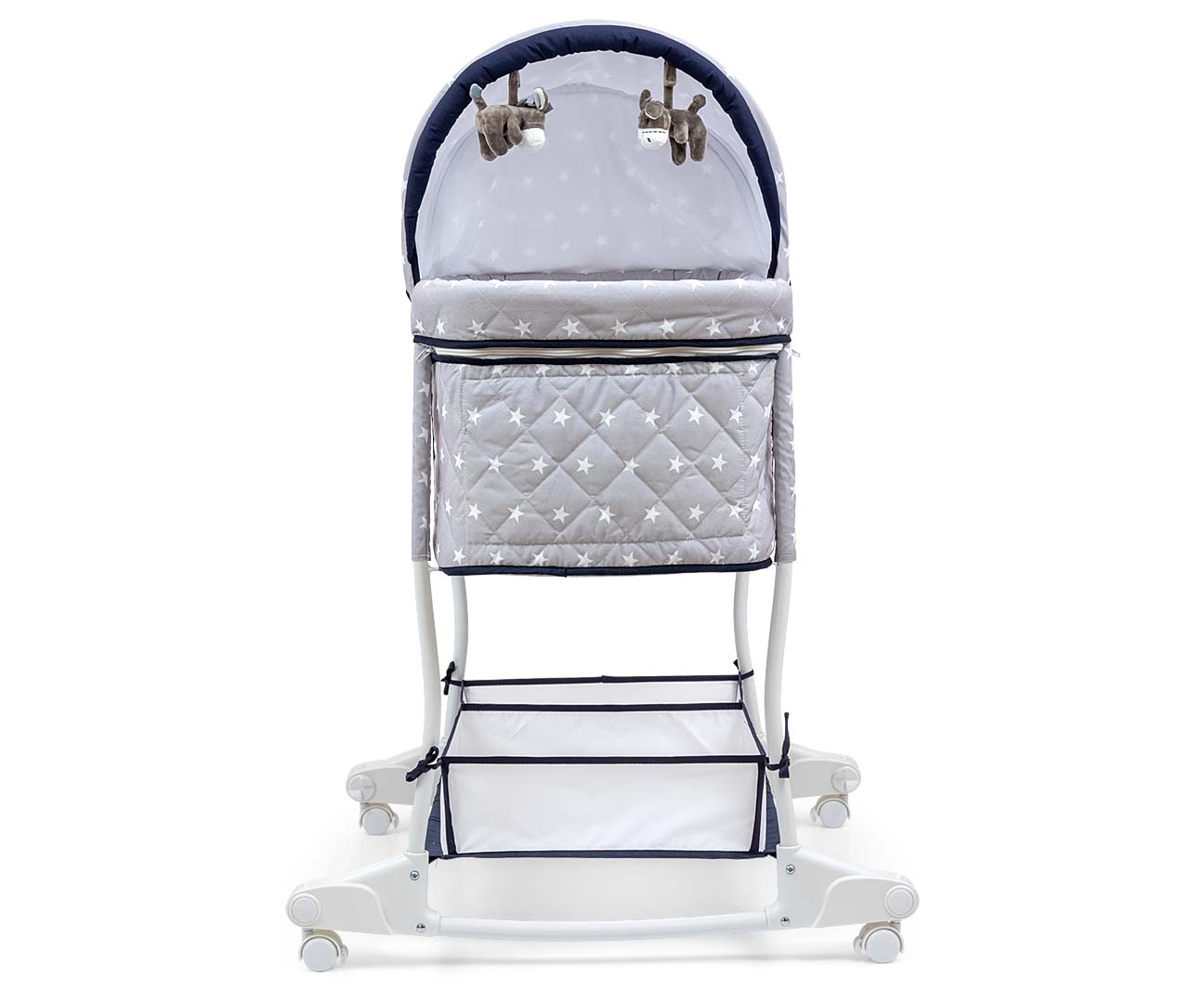 Kołyska – pierwsze łóżeczko wyposażone zostało w praktyczny schowek- koszyk na przybory i akcesoria dziecka umieszczony na dole, posiada 2 komory.