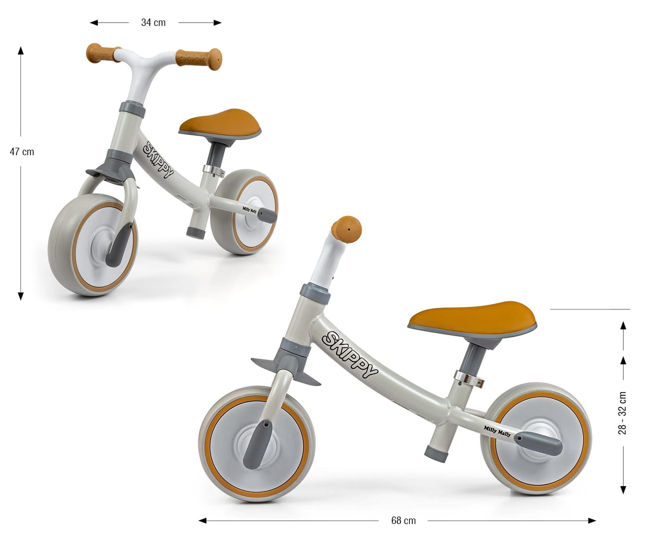 Te cechy sprawiają, że rowerek biegowy Skippy jest nie tylko stylowy, ale przede wszystkim bezpieczny i funkcjonalny. Jego trwała konstrukcja i niska waga ułatwiają przenoszenie i gwarantują długotrwałe użytkowanie.