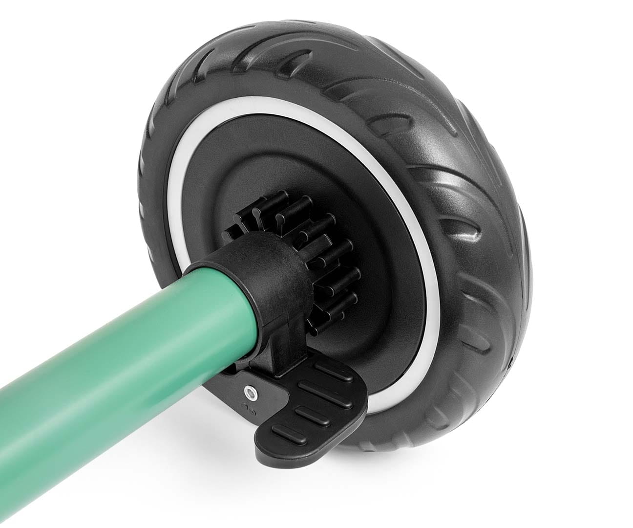 Połączenie metalowej konstrukcji oraz elementów wykonanych z najwyższej jakości materiałów, daje gwarancję wytrzymałości, która sprawdzi się w każdych warunkach. Natomiast szerokie i wytrzymałe koła wykonane z pianki EVA zapewniają trwałość i długie użytkowanie.