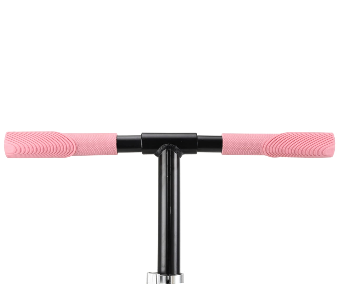 Dodatkowym atutem poprawiającym bezpieczeństwo poprzez zwiększoną przyczepność, jest podest pokryty specjalną antypoślizgową warstwą. Szyku i uroku całości hulajnogi ULTIMETE dodaje modny wzór w najmodniejszych kolorach: white, pink, black.