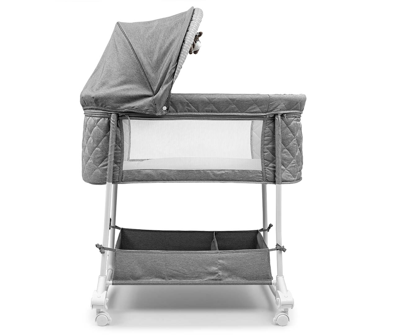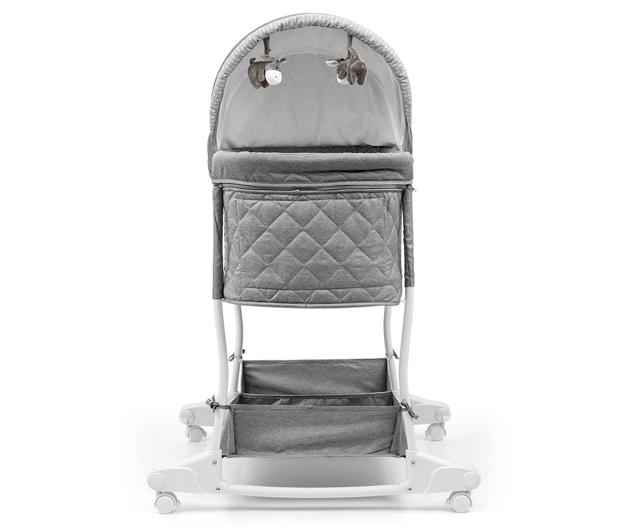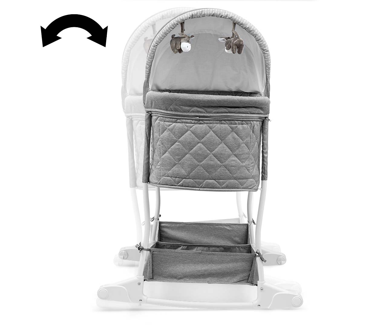 Kołyska – pierwsze łóżeczko wyposażone zostało w praktyczny schowek- koszyk na przybory i akcesoria dziecka umieszczony na dole, posiada 2 komory.