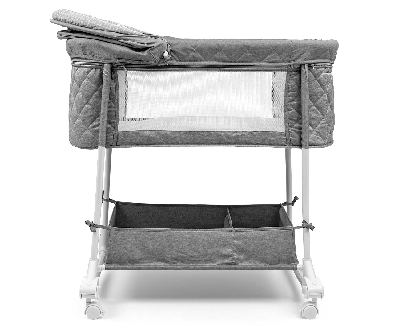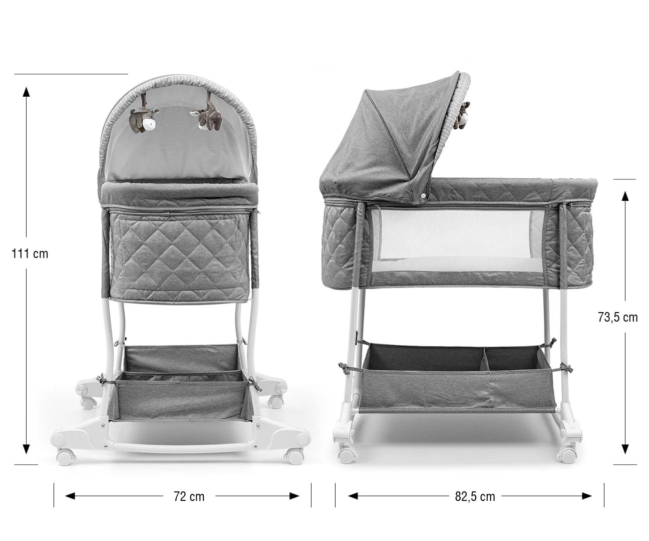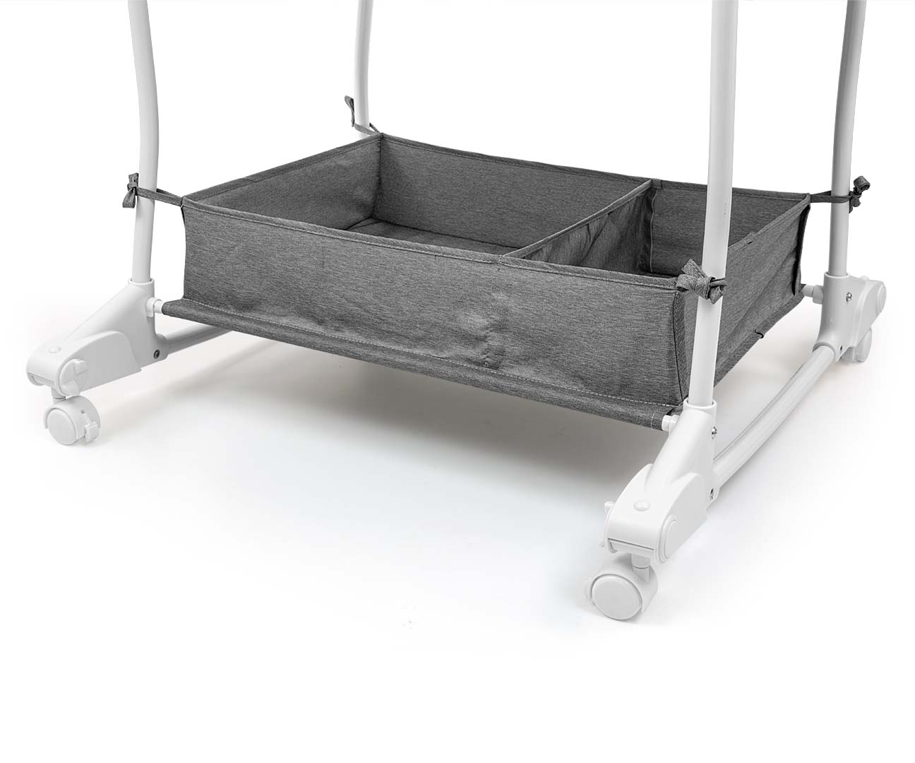 Kołyska – pierwsze łóżeczko wyposażone zostało w praktyczny schowek- koszyk na przybory i akcesoria dziecka umieszczony na dole, posiada 2 komory.