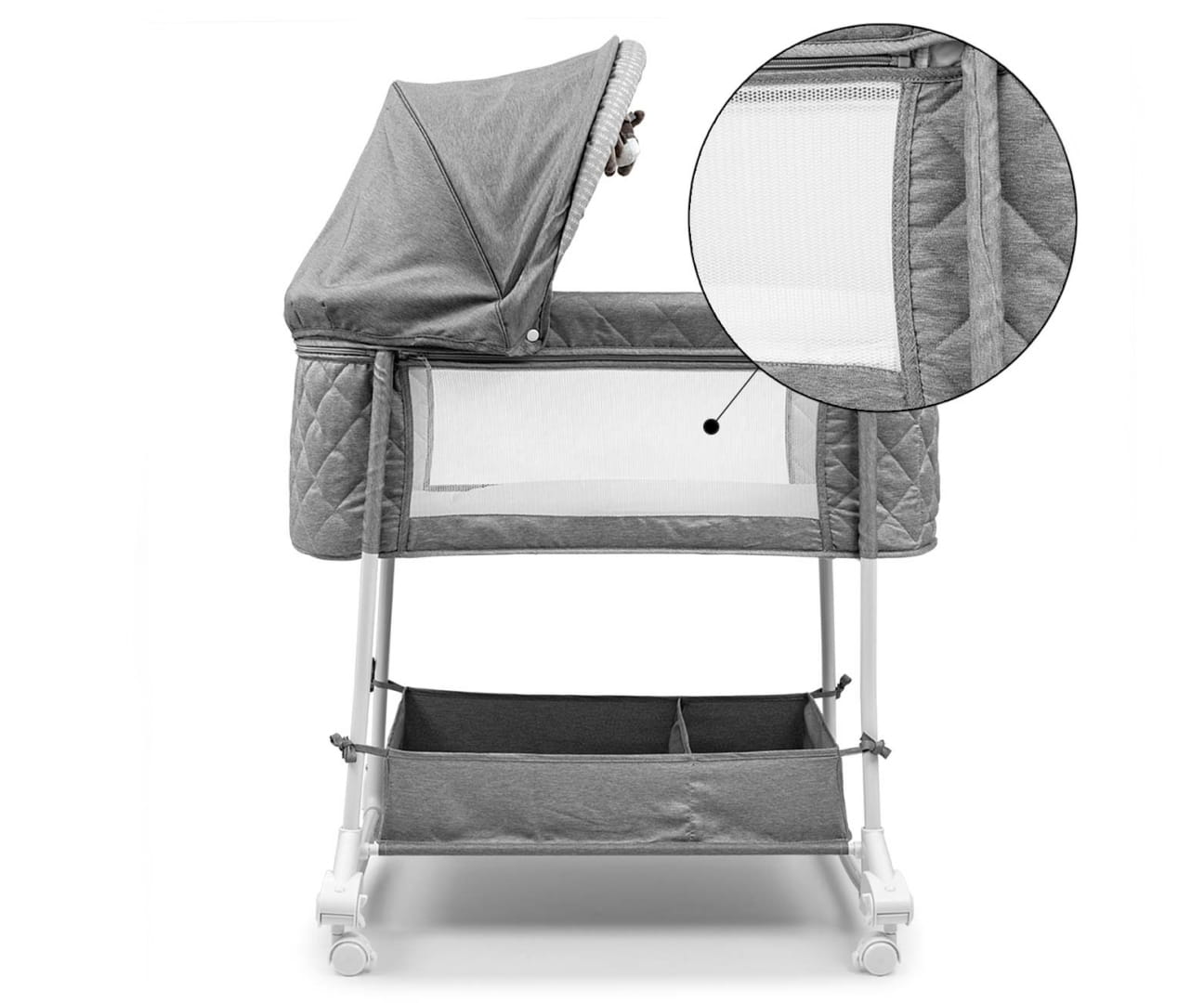 Wysokie boczne ścianki z siatką zapewnią odpowiednią cyrkulację powietrza i umożliwią rodzicowi pełną kontrolę oraz szybką reakcję, gdy dziecko się przebudzi. Dzięki temu, maleństwo szybciej się uspokaja i lepiej śpi.