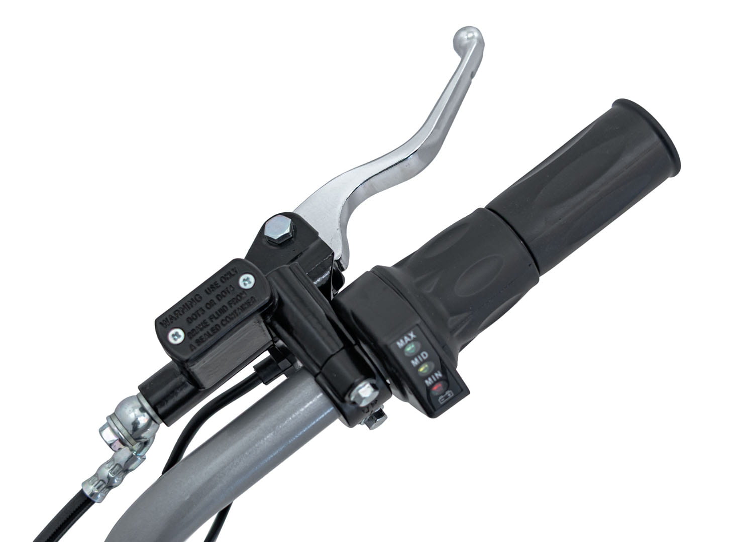 Bezpieczeństwo Twojego dziecka to priorytet. Dlatego motor wyposażono w regulację prędkości i momentu obrotowego, zabezpieczoną kluczykiem – idealne rozwiązanie dla rodziców chcących dostosować parametry jazdy do umiejętności pociechy. Hamulce tarczowe z przodu i z tyłu zapewniają skuteczne zatrzymywanie pojazdu w każdej sytuacji.