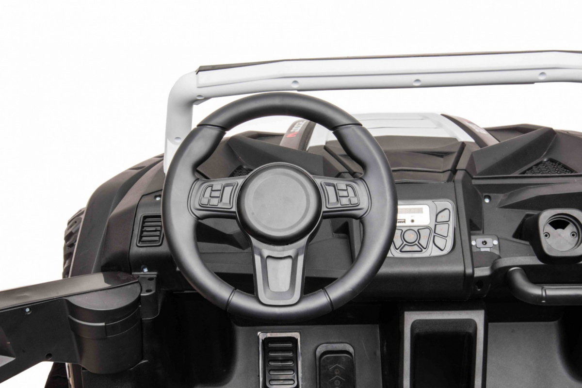 - Wyposażenie: Panel audio (MP3, AUX, Bluetooth, USB), wskaźnik naładowania, światła LED, siedzenia z ekoskóry, 4 pasy bezpieczeństwa, otwierane drzwi z blokadą.