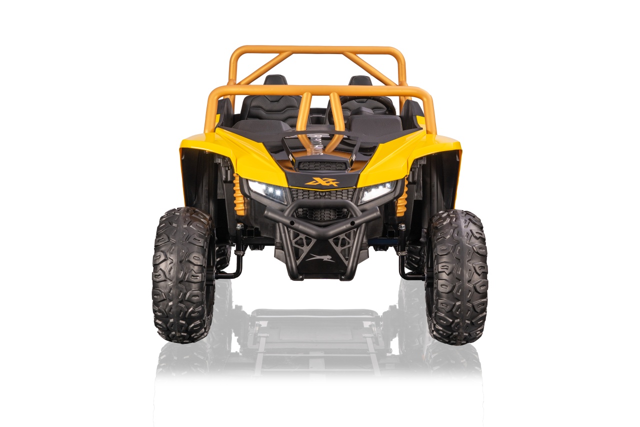 Rozświetl dziecięce przygody promiennym blaskiem! Pojazd Buggy Arctic Cat WILDCAT XX Żółty to kwintesencja energii i potęgi w świecie pojazdów na akumulator. Ten dwuosobowy, elektryczny Buggy z napędem 4x4 nie tylko zachwyca swoim radosnym kolorem, ale także imponującym wyposażeniem, takim jak regulowane zawieszenie i cztery potężne silniki. Zafunduj swoim dzieciom słoneczne wyprawy pełne adrenaliny – dostępny wyłącznie w sklepie z zabawkami Frajdomania!