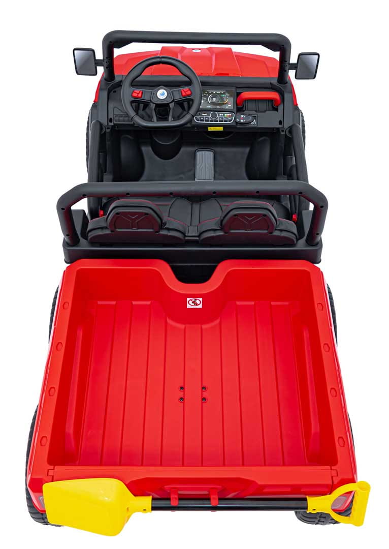 Dzięki pilotowi 2.4GHz z przyciskiem bezpieczeństwa STOP oraz trzema poziomami prędkości, rodzice mogą czuwać nad zabawą dziecka i w każdej chwili przejąć kontrolę nad pojazdem. System Wolnego Startu eliminuje gwałtowne szarpnięcia, a możliwość jazdy do przodu i do tyłu ułatwia manewrowanie nawet najmłodszym kierowcom.