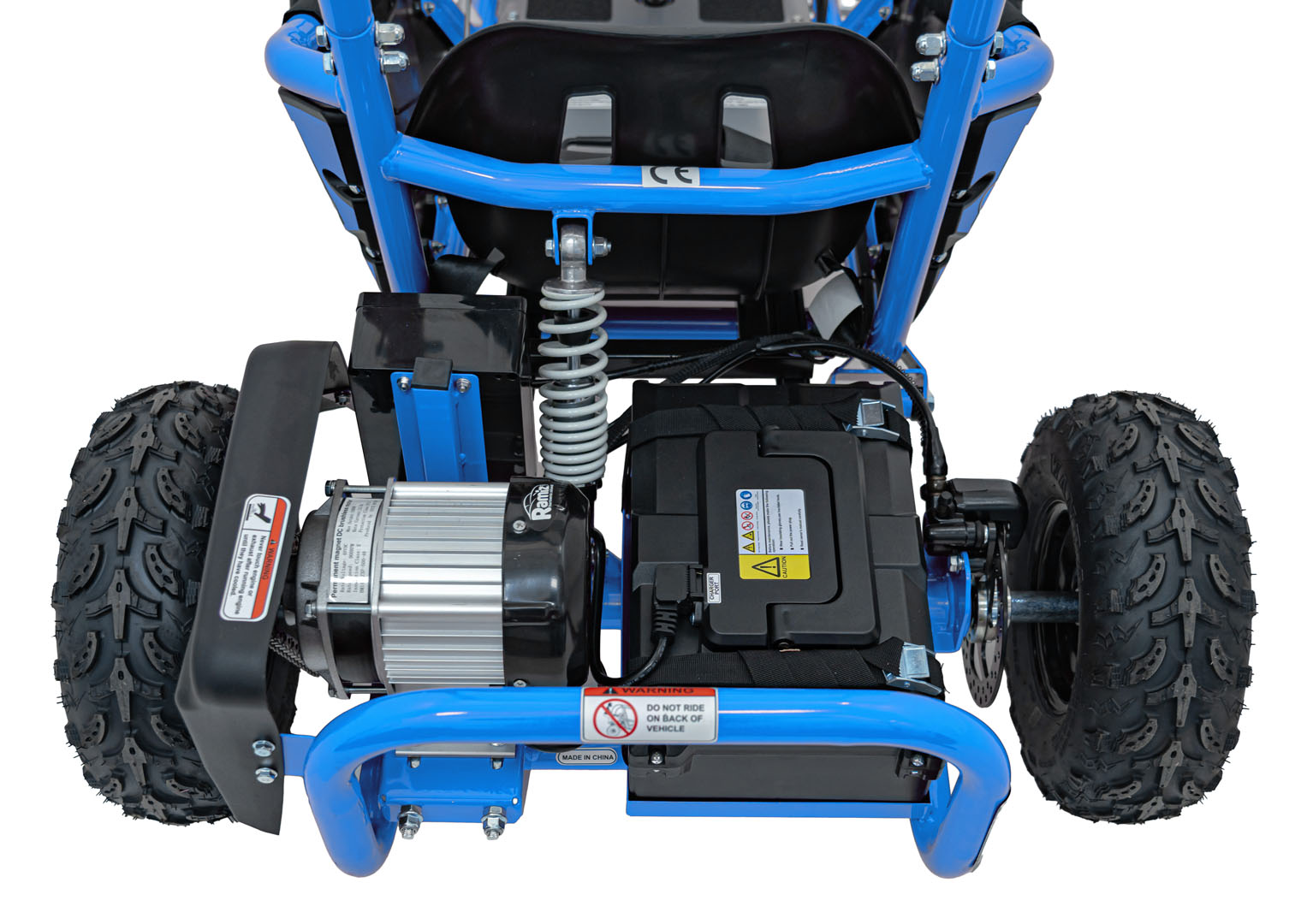 Bezpieczeństwo i kontrola to priorytety. Gokart Elektryczny MAIGHTY Niebieski oferuje unikalny, rodzicielski system zarządzania prędkością.